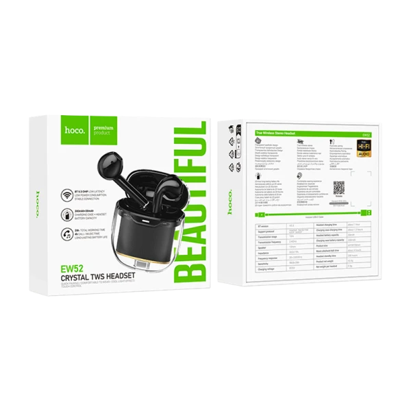 Наушники вставные HOCO EW52 bluetooth 5.3 с микр. черный (1/20/200)