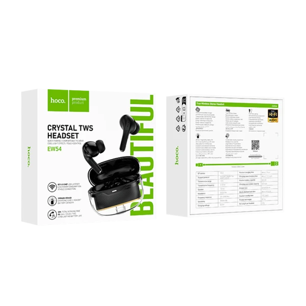Наушники внутриканальные HOCO EW54 bluetooth 5.3 с микр. черный (1/20/200)