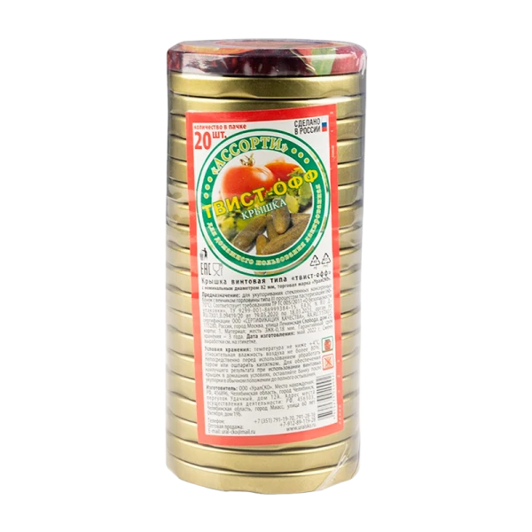 Крышки металлические твист-офф подходят для закатки банок, имеющих резьбу на горлышке. К плюсам можно отнести их долговечность и возможность закатывать вручную без закаточной машинки. Винтовые крышки можно применять несколько раз. Крышки твист-офф подойдут для всех видов продуктов. Крышки используются для стерилизованной и пастеризованной пищевой продукции при консервировании в домашних условиях. Герметичное прилегание к горловине, безопасное длительное хранение домашних заготовок, элегантный дизайн, простота использования.