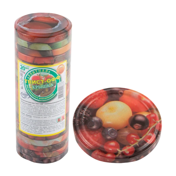 Крышка Твист-офф - представляет собой штампованное металлическое укупорочное средство с упорами для завинчивания, изготовленное из лакированной пищевыми консервными лаками и эмалями белой жести с внутренним уплотнением из материала на основе ПВХ.