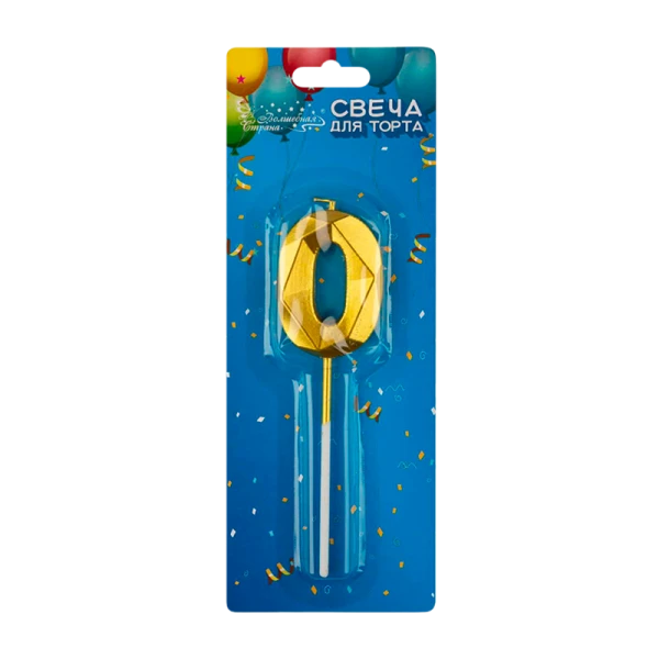 Свечи для торта Волшебная страна цифра 0 золотой (1/12/600)