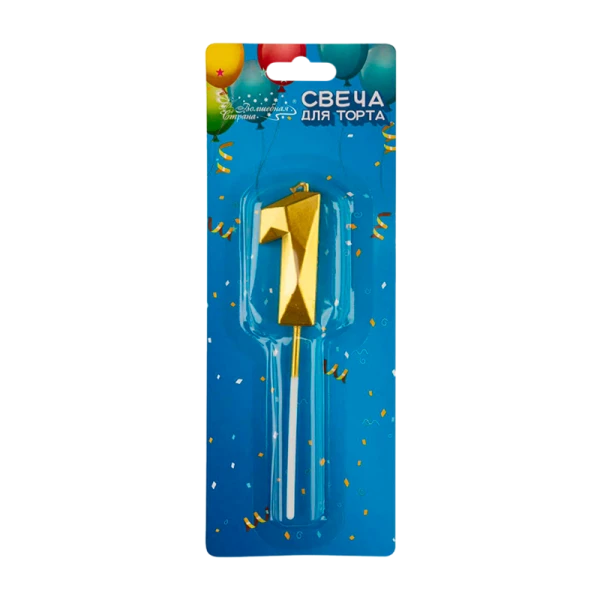 Свечи для торта Волшебная страна цифра 1 золотой (1/12/600)