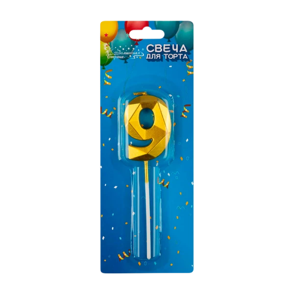 Свечи для торта Волшебная страна цифра 9 золотой (1/12/600)