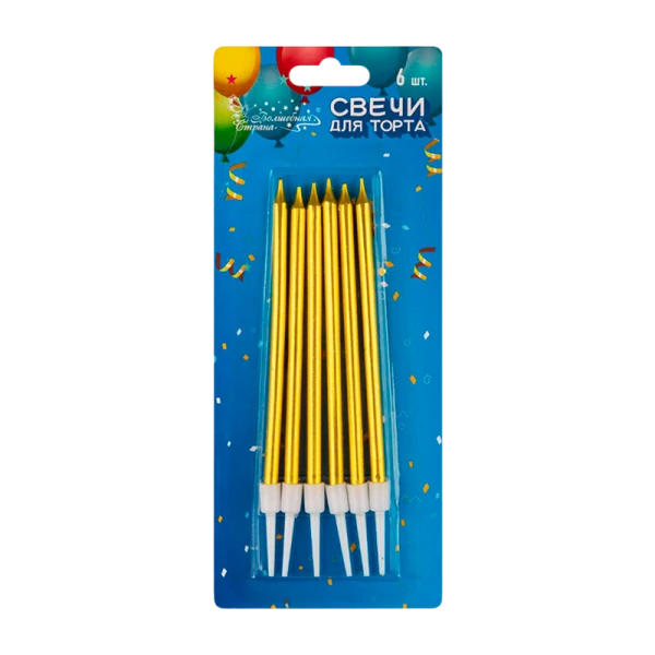 Свечи для торта Волшебная страна 13см с подставкой 6шт. золотой (1/12/300)