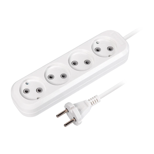 Практичный и надежный удлинитель для бытового использования. Оснащен 4 гнездами без заземления, что позволяет подключать несколько устройств одновременно. Длина кабеля составляет 7 метров, обеспечивая удобство размещения техники на расстоянии.