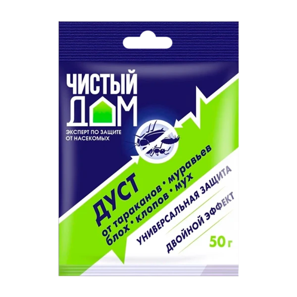 Дуст инсектицидный от тараканов, блох, клопов, муравьев, 50г. Эффективное средство для уничтожения тараканов, мух, блох, клопов и муравьёв. Повышенная эффективность благодаря наличию двух действующих веществ, подавляющих защитную систему насекомых.
