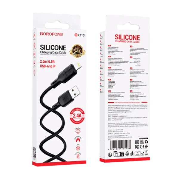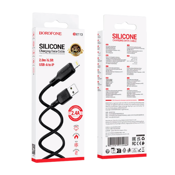 Кабель Borofone BX113 USB (m)-Lightning (m) 2.0м 2.4A силикон черный.