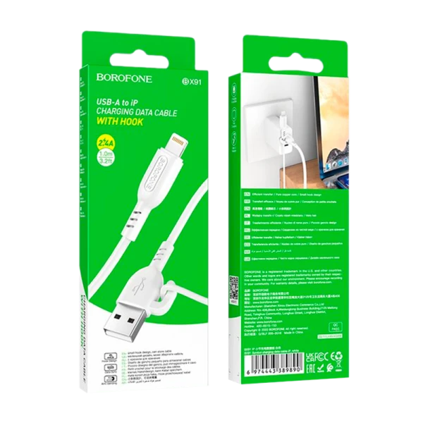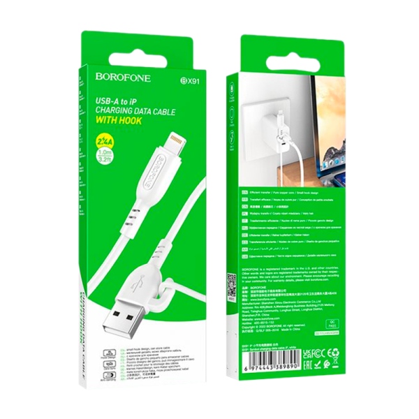 Кабель Borofone BX91 USB (m)-Lightning (m) 1м 2.4A ПВХ белый.