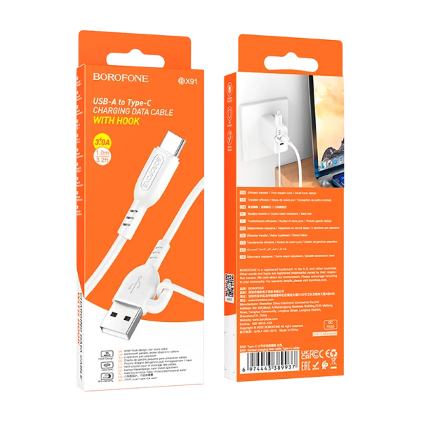 Кабель Borofone BX91 USB (m)-Type-C (m) 1м 3.0A ПВХ белый (1/360)