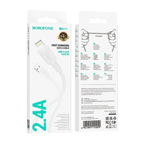 Кабель Borofone BX111 USB (m)-Lightning (m) 1м 2.4A ПВХ белый