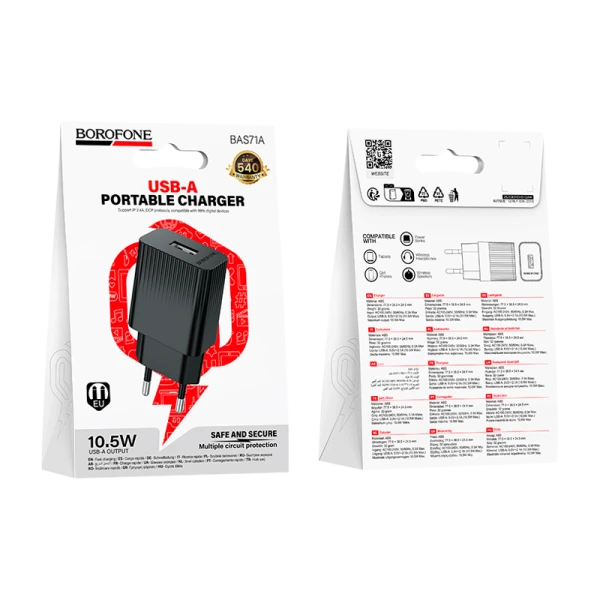 Сетевое З/У Borofone BAS71A 1USB 2.4A 10.5W черный (1/20/120)