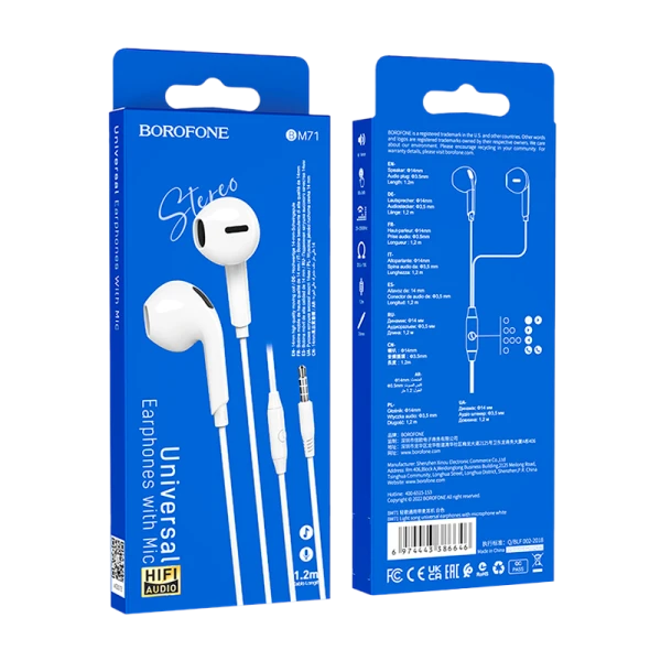 Наушники вставные Borofone BM71 с микр. белый (1/76/304)