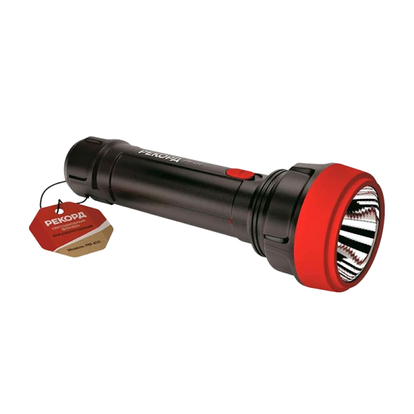 Подарок фонарь туристический Рекорд PM-450 от аккумулятора черный красный (1/6/48)