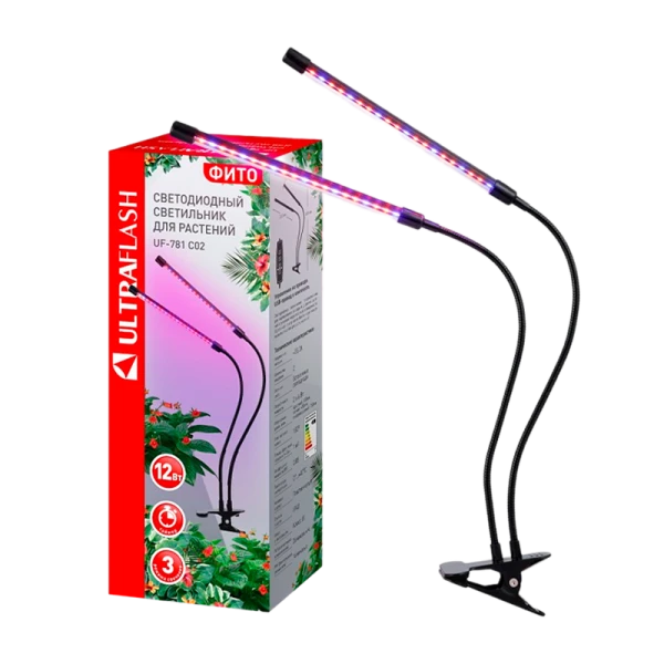 Фито светильник Ultraflash UF-781 C02 - это отличное решение для выращивания рассады и досветки растений в условиях недостаточной освещенности. Спектр света обеспечивает максимальную энергию для роста растений. Мощность светильника составляет 12Вт. Поворотная конструкция позволяет направить свет под любым углом.