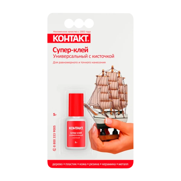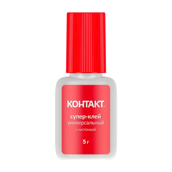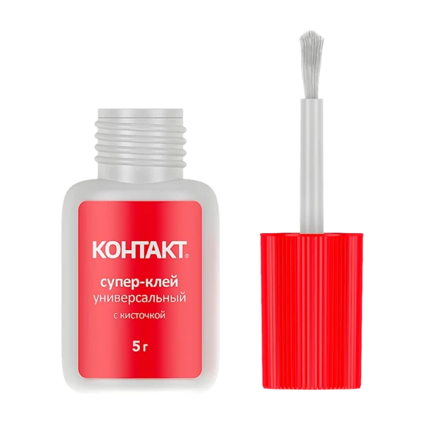 Супер-клей Контакт Универсальный с кисточкой для равномерного и точного нанесения. Однокомпонентный моментальный клей на основе этилцианакрилата. Предназначен для быстрого склеивания распространенных в быту материалов.
