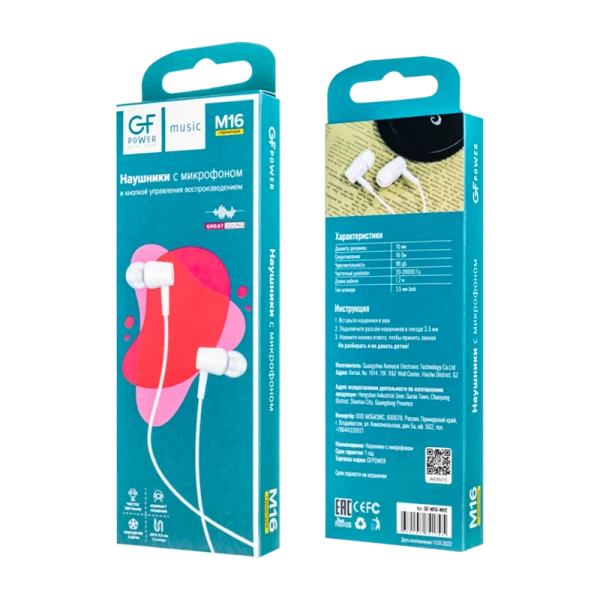Оригинальные проводные наушники GFPower M16 с микрофоном.