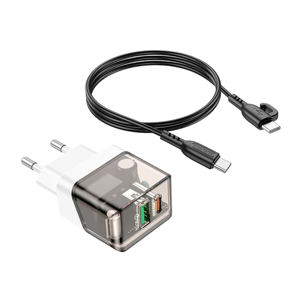 Сетевое З/У Borofone BA80A 1USB/Type-C 20W PD,QC с кабелем Type-C/Type-C черный