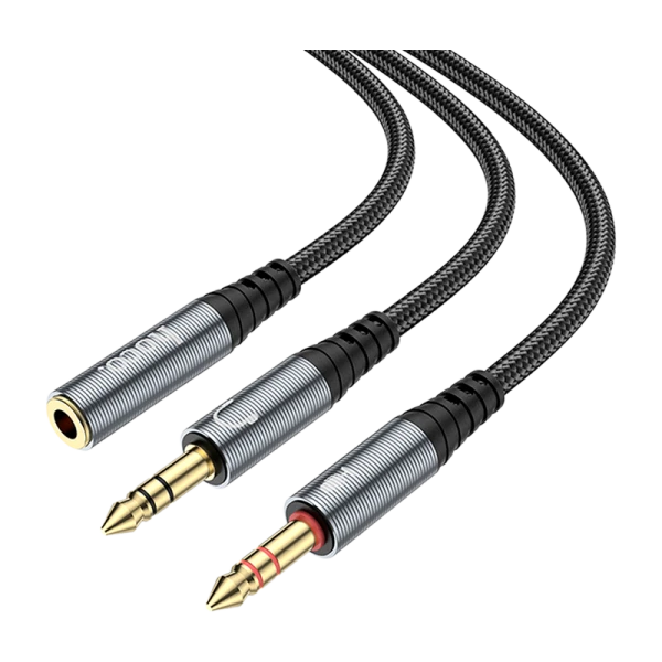 Кабель AUX HOCO UPA21 Jack 3.5mm (f)-2xJack 3.5mm (m) 0.25м серебряный цвет.