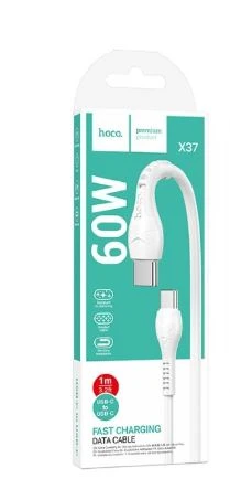 Кабель HOCO X37 Type-C (m)-Type-C (m) 1м 3.0A 60W ПВХ белый (1/31/310)