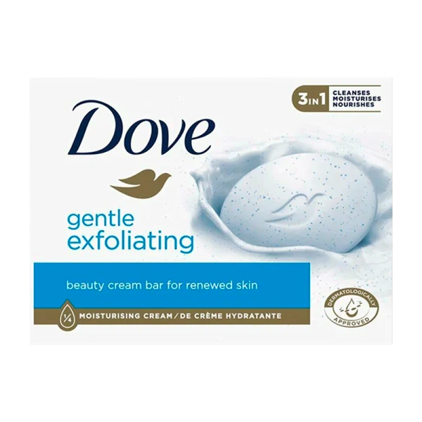 Благодаря уникальной комбинации 1/4 увлажняющего крема и отшелушивающих микрогранул крем-мыло Dove деликатно очищает кожу, удаляя ороговевшие клетки, и делая кожу мягкой и нежной. Используйте каждый день для глубокого питания и ослепительно красивой кожи. Не сушит кожу в отличие от обычного мыла.