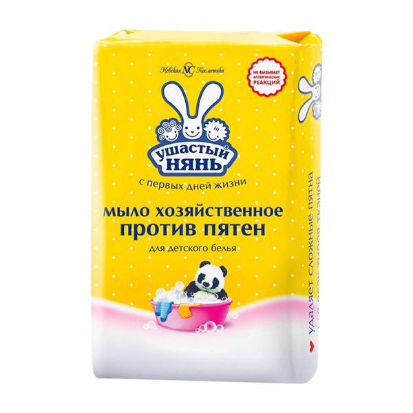 Ушастый нянь хозяйственное мыло предназначено для стирки и удаления пятен с белого и цветного детского белья. Идеально для быстрого застирывания небольших вещей. Не вызывает аллергии, не содержит парфюмерных добавок и красителей. Не требует многократных замачиваний. Содержит глицерин и энзим. Не содержит красителей.