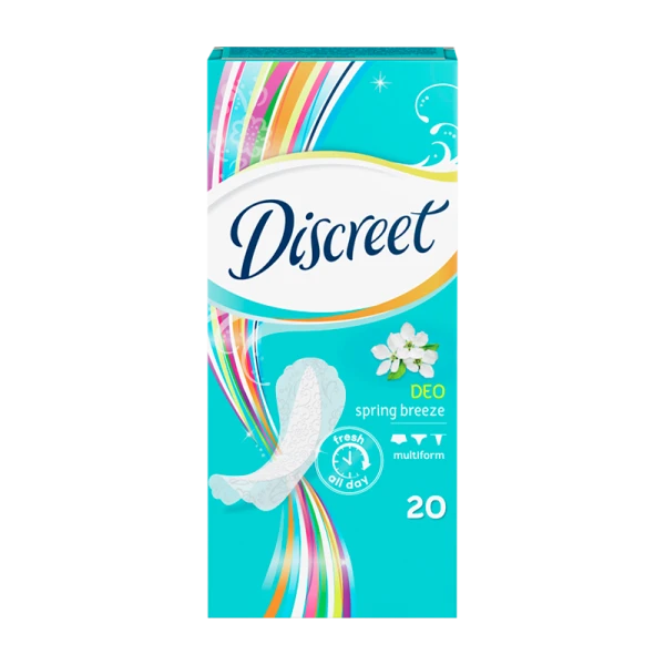 Deo Spring Breeze - самые тонкие ежедневные гигиенические прокладки! 100% ощущения свежести! Тонкая ежедневка с овальной серединкой в обрамлении шелковистых краев-крылышек и с легким ароматом. Discreet Deo Ocean Breeze подарят весеннюю свежесть каждой!