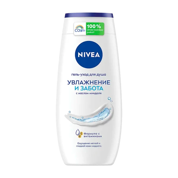 Гель-уход для душа Nivea «Увлажнение и забота» с маслом миндаля для всех типов кожи от NIVEA. Формула с витаминами С и Е защитит Вашу кожу от сухости, а нежный кремовый аромат пробудит Ваши чувства и подарит ощущение заботы о Вашей коже. Для ежедневного применения. pH-нейтрально для кожи. Дерматологически протестировано. Можно использовать с мочалкой для скрабирования кожи. Применение: нанесите гель для душа на тело, помассируйте и смойте водой комфортной температуры. Избегайте попадания в глаза.