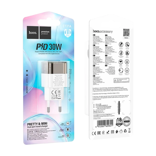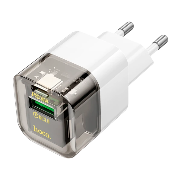 Сетевое З/У HOCO C131A 1USB/Type-C 3.0A 30W QC3.0 черный цвет.