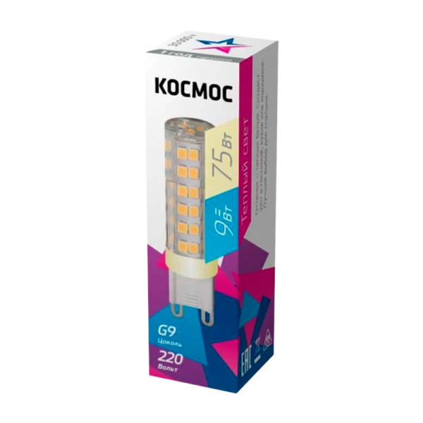Капсульные лампочки КОСМОС с и цоколем G9 используют в настенных светильниках и настольных лампах, для создания световых зон в магазинах и подсветки витрин в торговых залах, а также для расстановки акцентов на картинах или мебели. Несмотря на относительно небольшую мощность (9 Вт) они создают яркий комфортный свет. При этом капсулы практически не нагреваются даже при продолжительной работе - использовать их можно в том числе с натяжными потолками. Рабочее напряжение ламп - 220В.