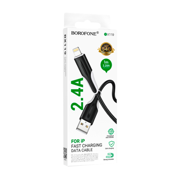 Кабель Borofone BX119 USB (m)-Lightning (m) 1м 2.4A ПВХ черный (1/360)