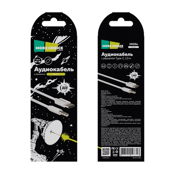 Кабель AUX MORE CHOICE UK22a Jack 3.5mm (m)-Type-C (m) 1м ПВХ белый