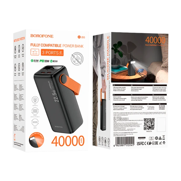 Внешний аккумулятор Borofone BJ66 40000mAh 3.0A 22.5W 2USB, черный цвет.
