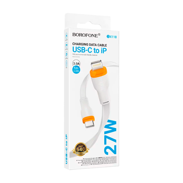 Borofone BX118 это стильный, прочный и удобный в использовании кабель USB Lightning длиной 1 метр. Качественная оплетка TPE обеспечивает повышенную прочность и защиту от повреждений, что продлевает срок службы кабеля. Максимальная сила тока кабеля 2.4А, что обеспечивает оптимальную зарядку устройств и позволяет использовать его для зарядки смартфонов, планшетов, наушников и других устройств с разъемом Lightning 8pin. Кабель Borofone BX118 подходит для использования в домашних условиях, офисе или в автомобиле, идеально подойдет в качестве основного или запасного кабеля для зарядки.