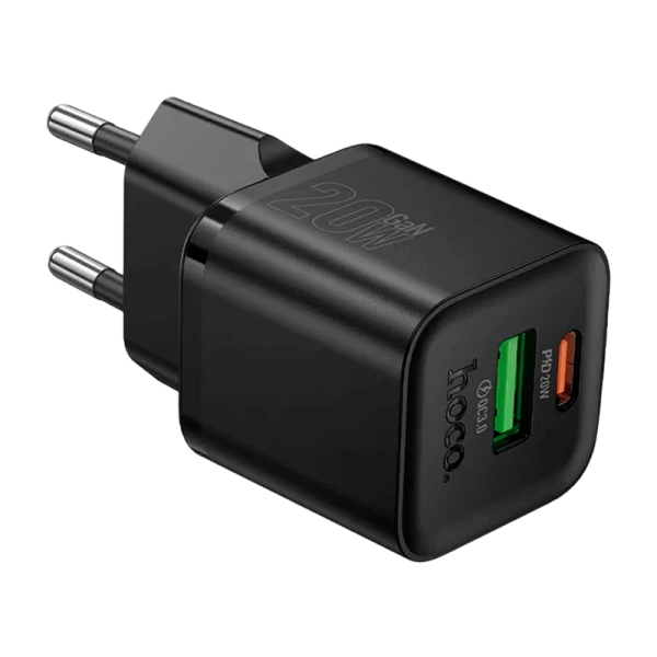 Сетевое З/У HOCO N65 1USB+1Type-C 20W PD,QC с кабелем Type-C-Lightning черный.