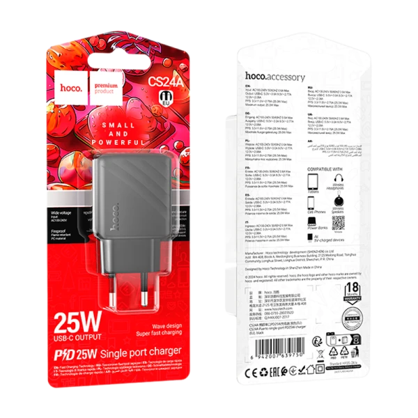 Сетевое З/У HOCO CS24A Type-C 25W PD3.0 черный (1/32/192)