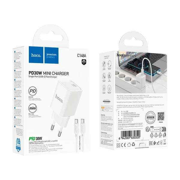 Универсальное сетевое зарядное устройство HOCO C148A для электронной техники с портом Type-C. Поддерживает быструю зарядку. Адаптер легко можно взять с собой в автомобильное путешествие, компактный и практичный, он не займет много места и быстро зарядит ваши мобильные устройства.