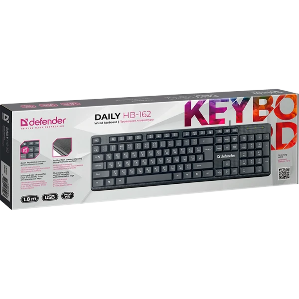 Клавиатура проводная Defender HB-162 RU Daily классическая USB 1.8м черный (1/20)