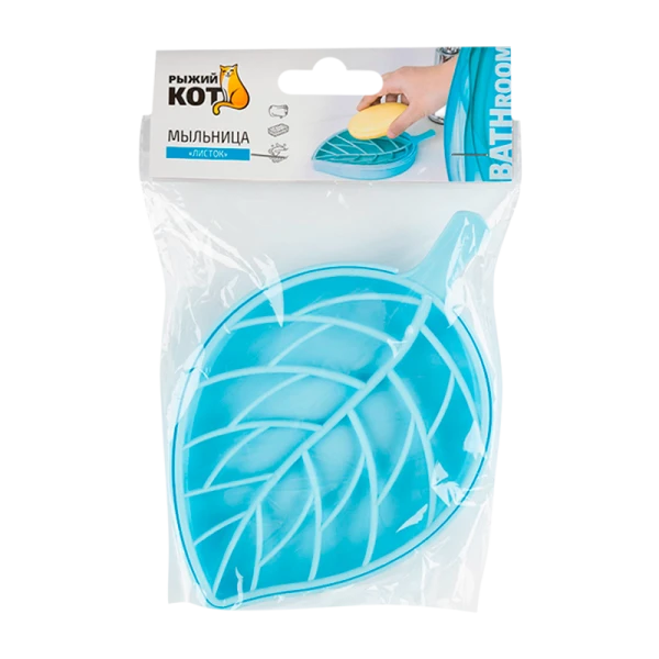 Мыльница "Листок" Рыжий кот 17.5х10х2 см пластик ассорти (1/24/48)