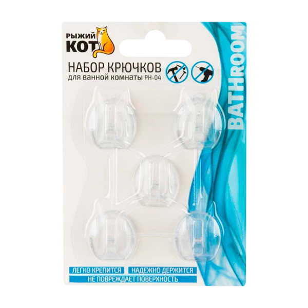 Набор прозрачных крючков Рыжий кот PH-04 на самоклеящейся основе.