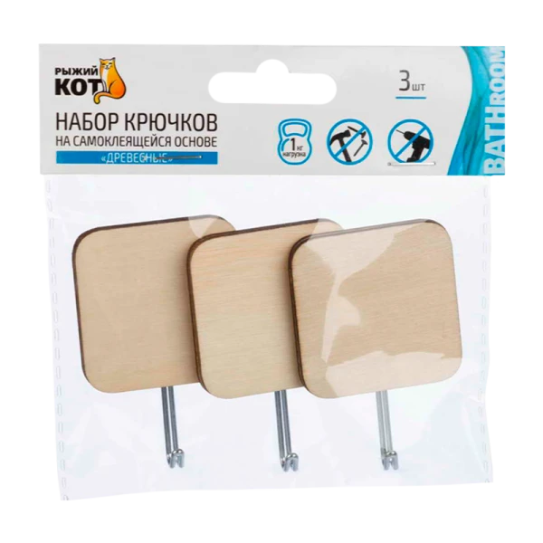 Крючки Рыжий кот "Древесные" клеевая основа, 3 шт в наборе.