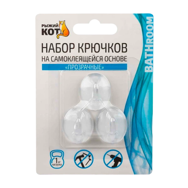 Крючки Рыжий кот "Прозрачные" клеевая основа 2.8х2.4см 1кг 3шт. прозрачный (1/24/240)