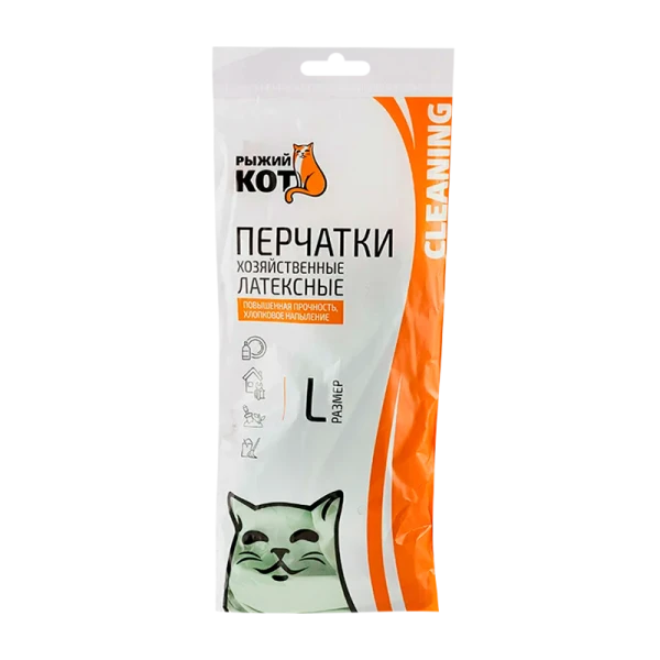 Перчатки латексные Рыжий кот повышенной прочности с напылением.