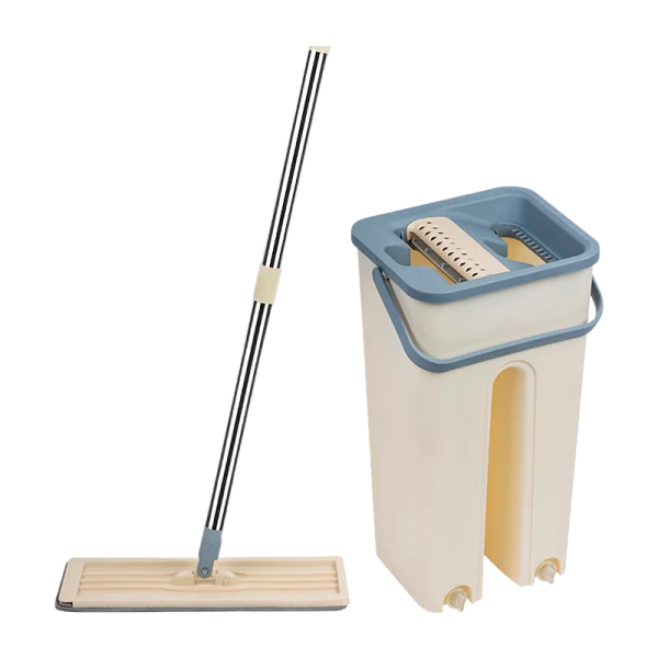 Швабра для пола Рыжий кот 120см с ведром и насадкой бежевый.