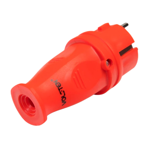 Каучуковая вилка Volsten S1-PZ Red предназначена для мощных электроприборов. Поставляется с защитой IP44, подходит для использования на улице и внутри помещений.