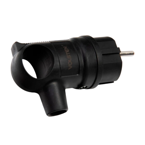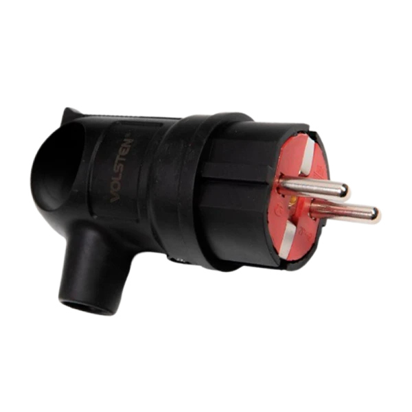 Угловая вилка с кольцом Volsten S2-PZ Black – надежное решение для подключения мощных устройств на улице и дома с повышенной степенью защиты IP44.