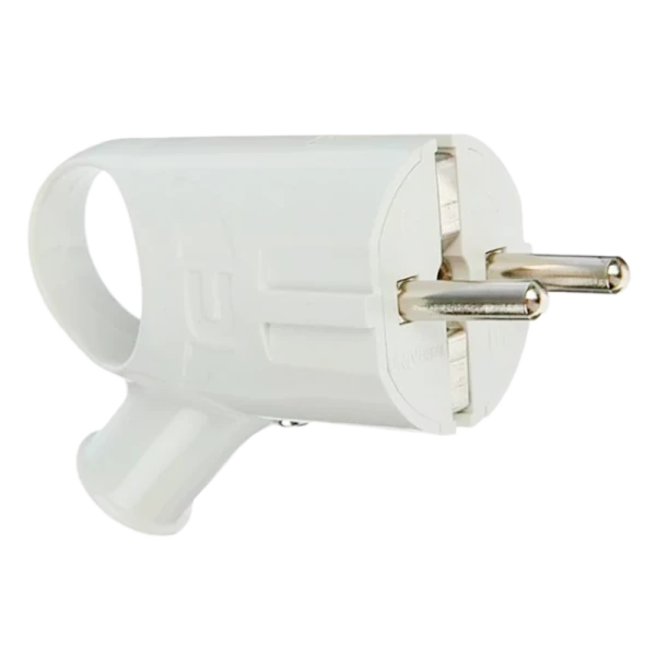 Угловая электрическая разборная вилка Volsten белого цвета с заземляющим контактом и специальным кольцом для комфортного использования. Номинальный ток 16А позволяет подключать приборы мощностью до 3.5 кВт. Угловая конструкция обеспечивает компактное подключение у стены без изгиба кабеля. Кольцо на корпусе позволяет безопасно и аккуратно извлекать вилку из розетки. Заземляющий контакт обеспечивает защиту от поражения электрическим током. Корпус из прочного пластика гарантирует долговечность эксплуатации.