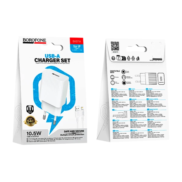 Набор с кабелем Lightning Borofone BAS71A, белый цвет.