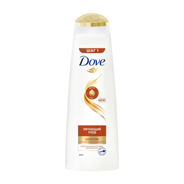Шампунь Dove Питающий уход работает сразу в 3-х направлениях для достижения эффекта гладких и послушных волос. Формула с уникальным комплексом ультралегких масел помогает мгновенно избавиться от эффекта непослушных волос, а также обеспечивает глубокое питание до 100% для более гладких волос. Молекулы Fibre Repair Actives проникают вглубь структуры волоса, интенсивно питают и мгновенно разглаживают даже самые непослушные волосы. Прогрессивное питание делает волосы более шелковистыми и послушными. С каждым применением ваши волосы еще более мягкие, гладкие и красивые! Благодаря технологии деликатного очищения идеально подходит для ежедневного использования.