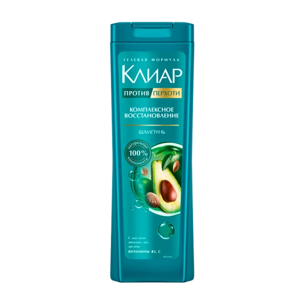 Клиар Комплексное восстановление — мягкий шампунь против перхоти, усиленный 100% натуральными компонентами: маслами авокадо, ши и маслом арганы для волос. Шампунь для волос женский мягко очищает, оказывает ухаживающее действие и обеспечивает видимый результат: комплексное восстановление волос с первого применения!