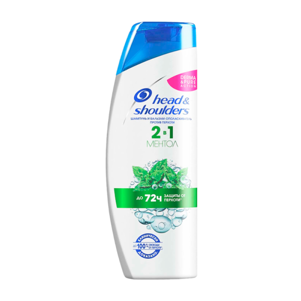 Шампунь Head&Shoulders Ментол 2в1 освежающий, с натуральным ментолом. Мягкая, рН-сбалансированная формула подходит для ежедневного использования. Устраняет до 100% перхоти.
